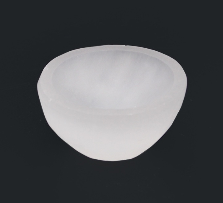 Овој тркалезен сад од селенит – 6 см може да се користи на различни начини, како едноставен украсен предмет или како место за вашите работи, како што се вашите кристали, на пример и воедно ќе ги прочистува.
