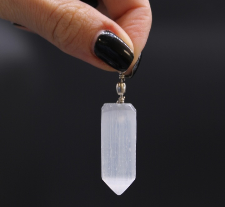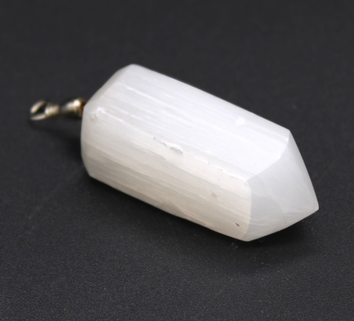 Селенитните приврзоци се прекрасни талисмани направени од природен, суров селенит. Нежен, лесен и прекрасно изгледа. Белиот селенит прекрасно трепка рефлектирајќи ја светлината, а неговиот сјај потсетува на месечевата светлина.