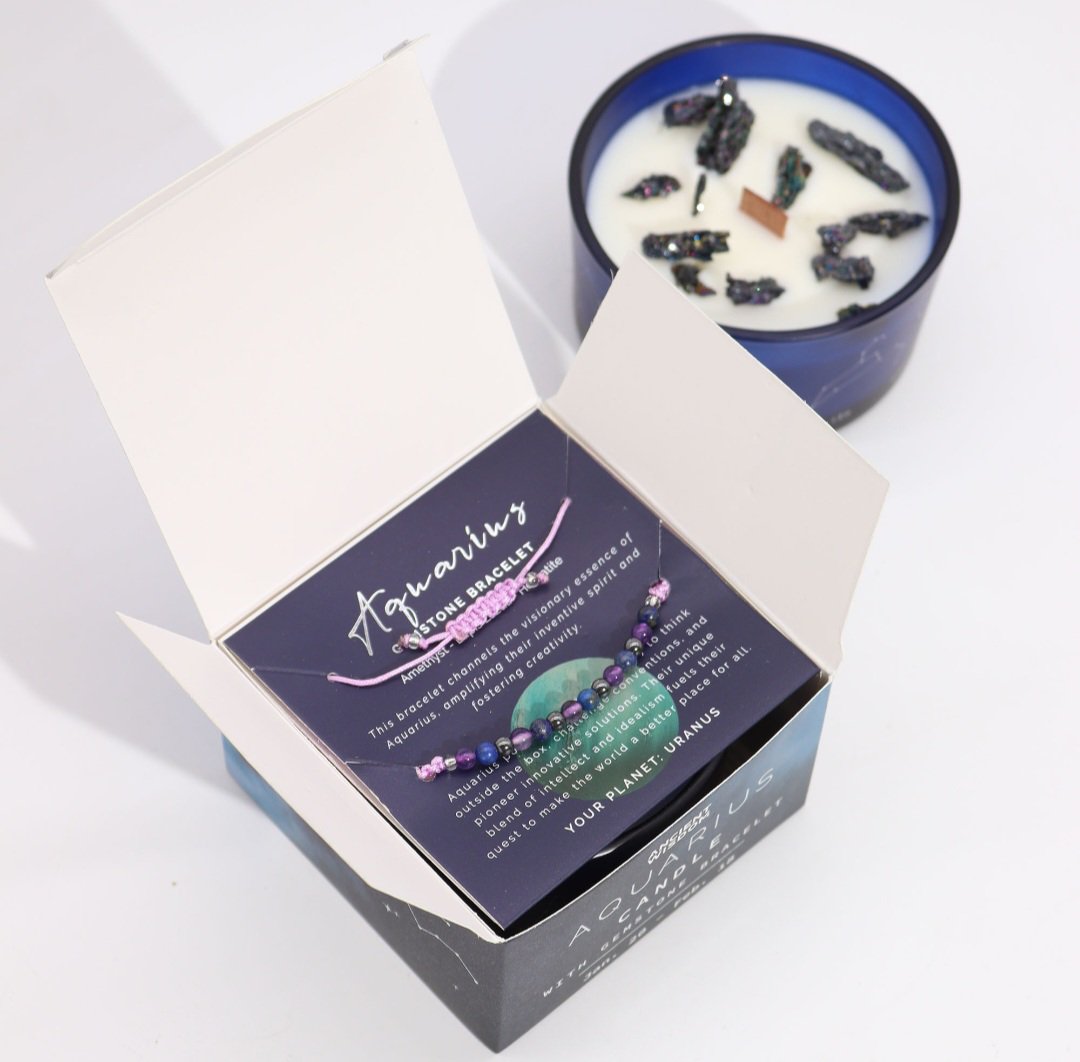 Зодијак кристална свеќа со нараквица од скапоцени камења – Водолија